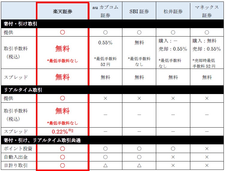 ※1:主要ネット証券(口座数上位5社:auカブコム証券、SBI証券、松井証券、マネックス証券、楽天証券(五十音順))、単元未満株提供のスマホ証券(CONNECT)で比較(2023年12月12日、楽天証券調べ)