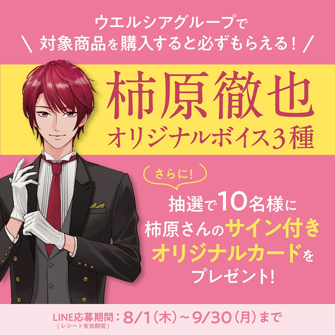 ウエルシアグループ店内では、8月5日(月)から9月1日(金)の期間に、店内放送にて柿原さんのボイスメッセージをお楽しみいただけます。
