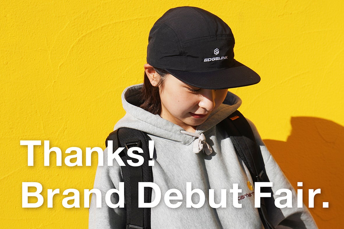 ブランドデビューを記念し、初回生産品限定でEDGELINKのロゴデザイン等を手掛けたクリエイター上岡拓也氏デザインのオリジナルステッカーを同梱するほか、2月1日(木)~ 2月14日(水)の期間、公式オンラインストア限定で購入者を対象にオリジナルキャップをプレゼントするブランドデビューフェアを実施します。