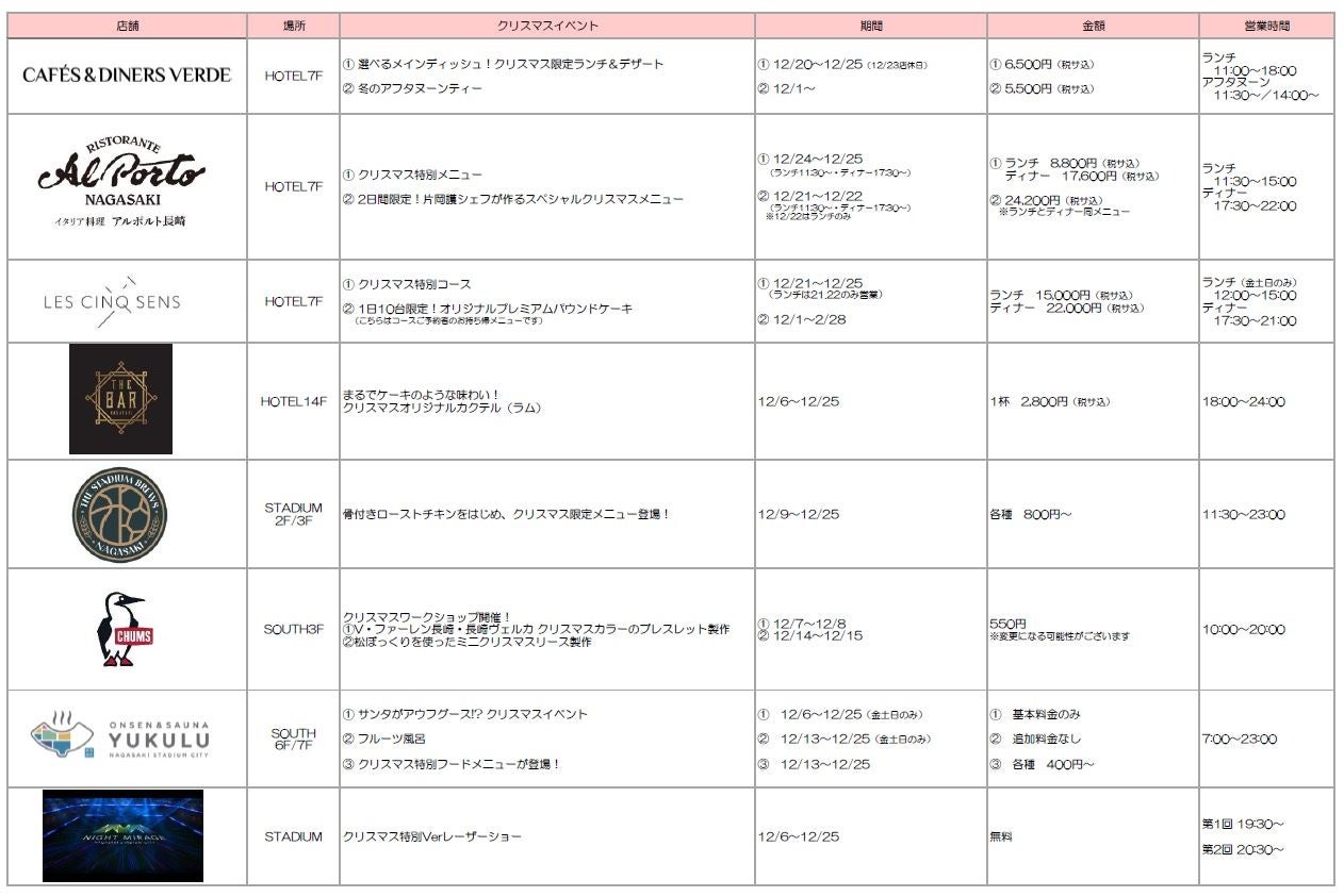 さらに、クリスマスシーズンには、クリスマス限定のイベントやレストランメニューもございます。イルミネーションと合わせて、冬の長崎スタジアムシティを満喫できる企画を沢山準備しておりますので、皆様ぜひお越しください。