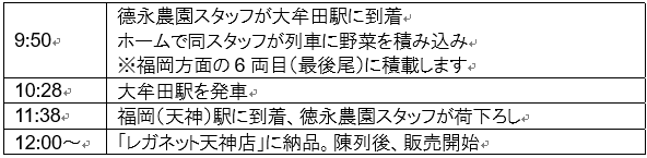 大牟田の朝採れ野菜を急行列車で輸送→「レガネット天神店」で販売します!