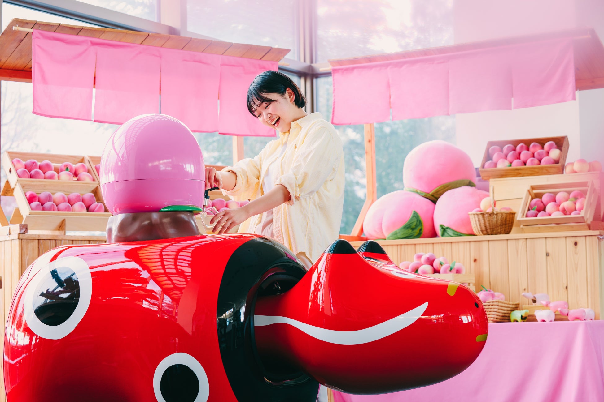 ウェルカムサービスとして、大きな桃を背負った赤べこのウォーターサーバーが新登場。素材の風味を味わえるすっきりとした桃のフレーバーウォーターを提供します。注いだウェルカムドリンクと共に、ウォーターサーバーと記念撮影をするのがおすすめです。