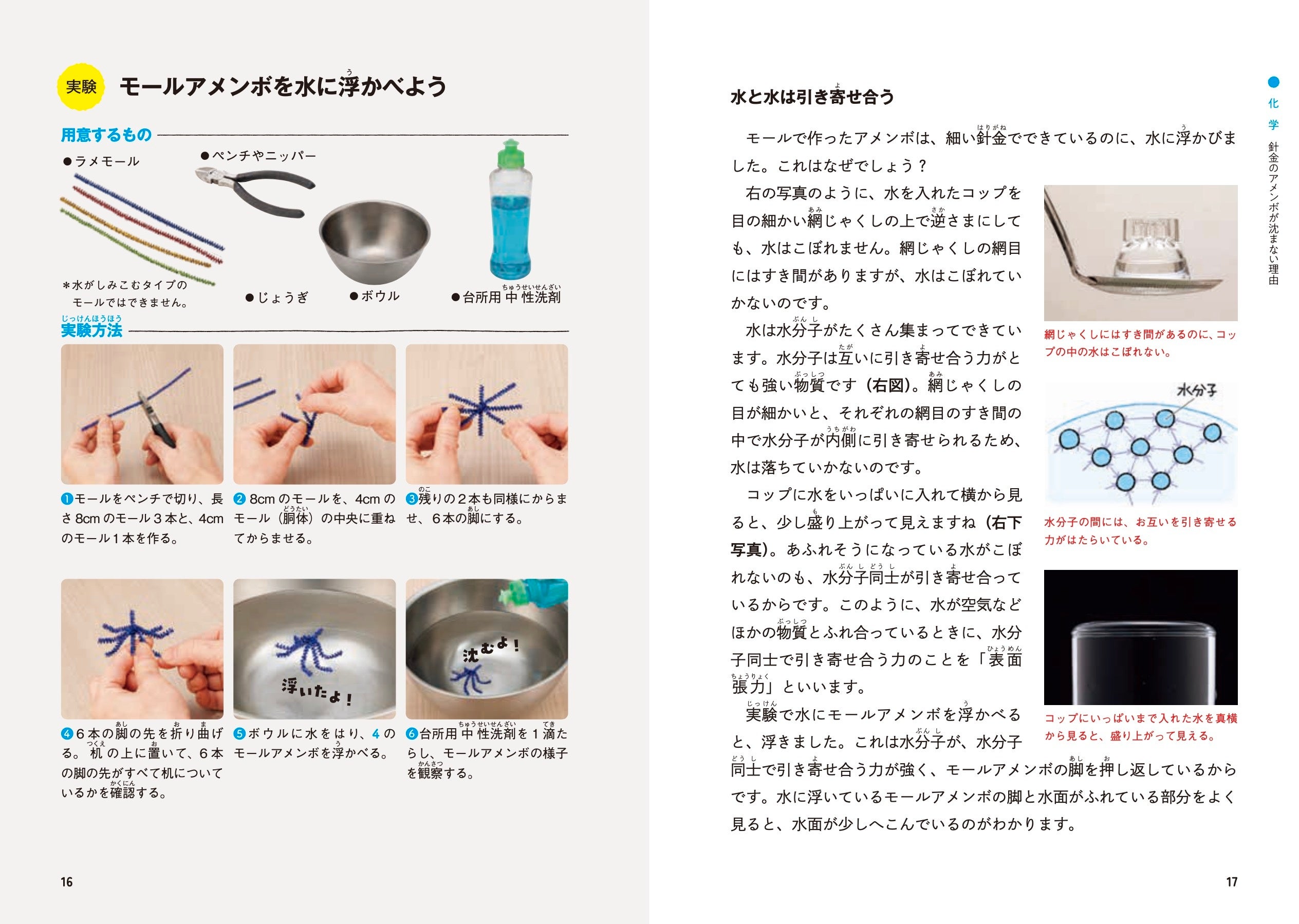家あるものや100均で手に入る材料を使ってできる科学実験の方法を紹介しています。