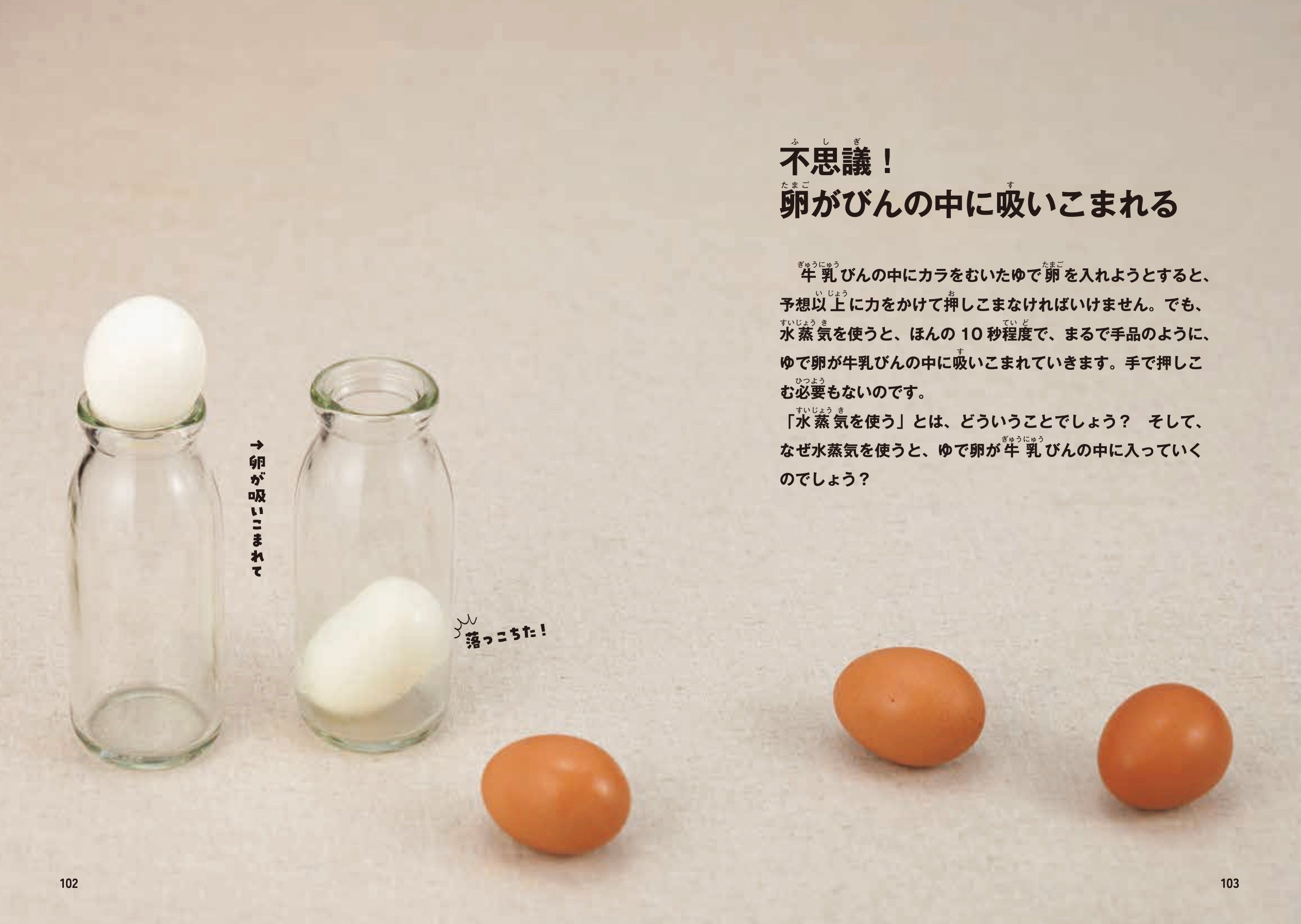 不思議! 卵がびんの中に吸いこまれる