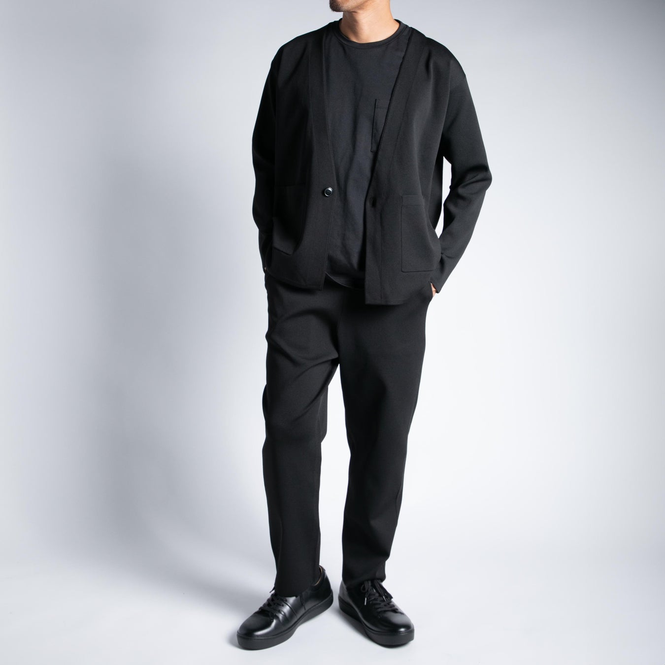 特徴:タフで高機能な特殊な糸を使用した、ウォッシャブルな高機能ノーカラーニットジャケット。自宅洗濯機で丸洗い可能で、毛玉になりにくく、型崩れもしにくい。さらに放電テープにより静電気も抑制。