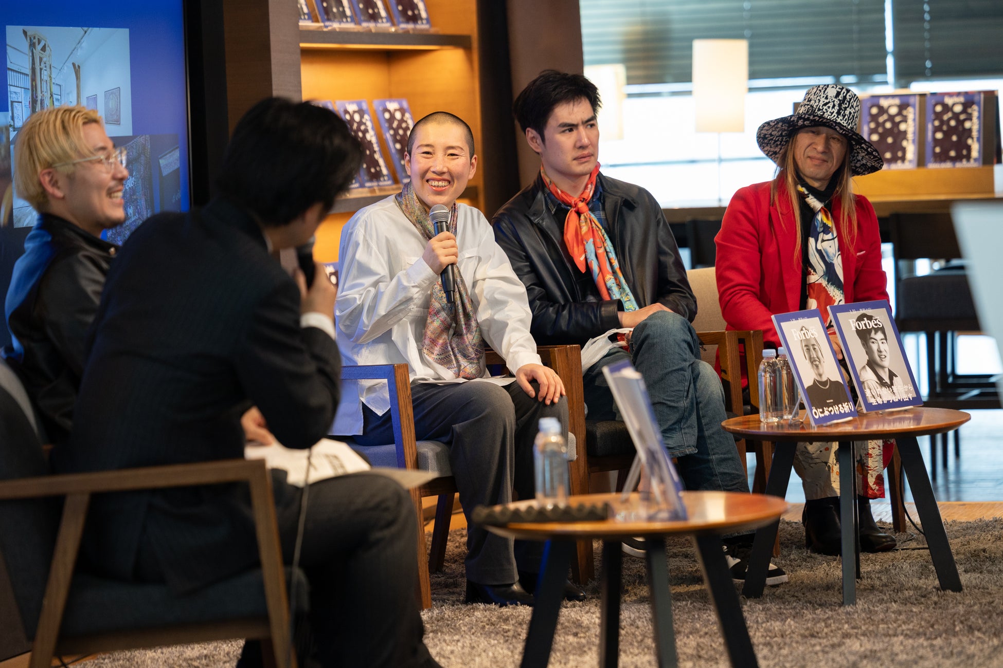 1月29日に代官山 蔦屋書店で行われたメディア発表会では、ヘラルボニー契約作家の浅野 春香氏と中尾 涼氏、やまなみ工房施設長の山下 完和氏が登壇しました。トークセッションでは、Forbes JAPAN編集長の藤吉 雅春氏とヘラルボニーCo-CEO 松田 崇弥と共に「異彩を放つ作家が社会に与えた影響」について語りました。