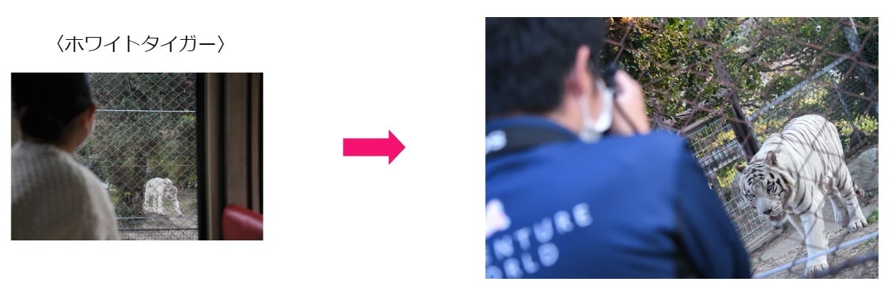 - 「肉食動物を撮影したい!」そんな声にお応えして撮影ポイントにホワイトタイガーをご用意!