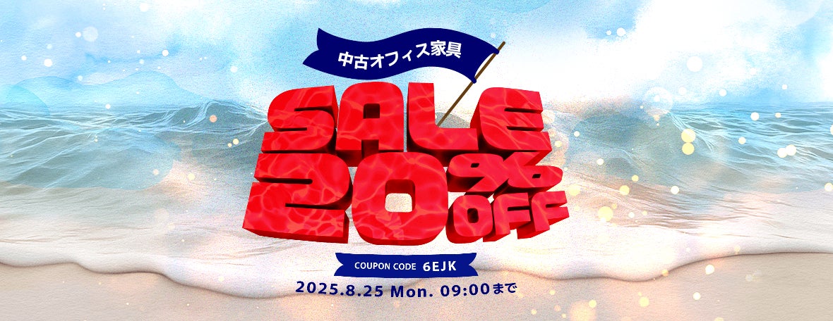 株式会社オフィスバスターズ(東京都中央区/代表取締役社長:熊谷 正慶〈東京証券取引所 TOKYO PRO Market 証券コード:5890〉、以下当社)をご愛顧いただき、誠にありがとうございます。このたび当社では、連日の猛暑の中で奮闘されている法人のお客様への感謝を込めて、チェア・デスク・ロッカー・書庫など対象の中古オフィス家具が20%OFF! となる「サマーセール」を実施いたします。本キャンペーンは【8月25日(金)9:00まで】の期間限定!ご検討中のお客様は、ぜひこの機会にお早めにお問い合わせください!