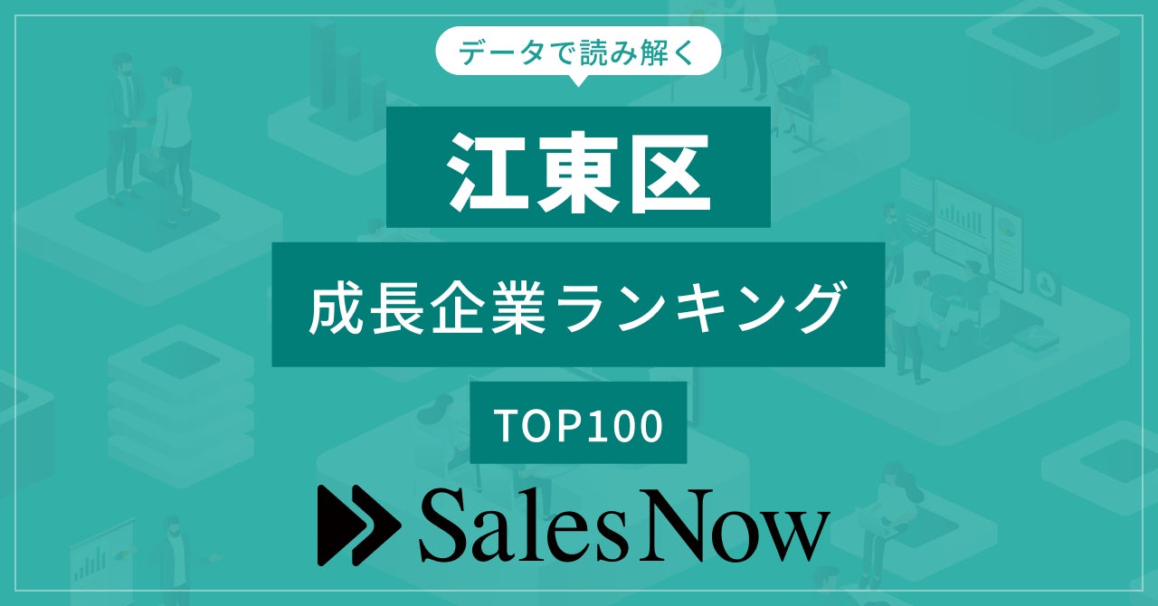 「誰もが活躍できる仕組みをつくる。」をミッションに掲げ、セールスチームの武器となるデータベース「SalesNow」を展開する株式会社SalesNow(本社:東京都渋谷区、代表取締役:村岡功規、以下「SalesNow」)は、国内540万社の企業情報を完全網羅した日本最大級のデータベース「SalesNow DB」より、江東区に本社を置く企業の成長企業ランキングTOP100を調査しました。