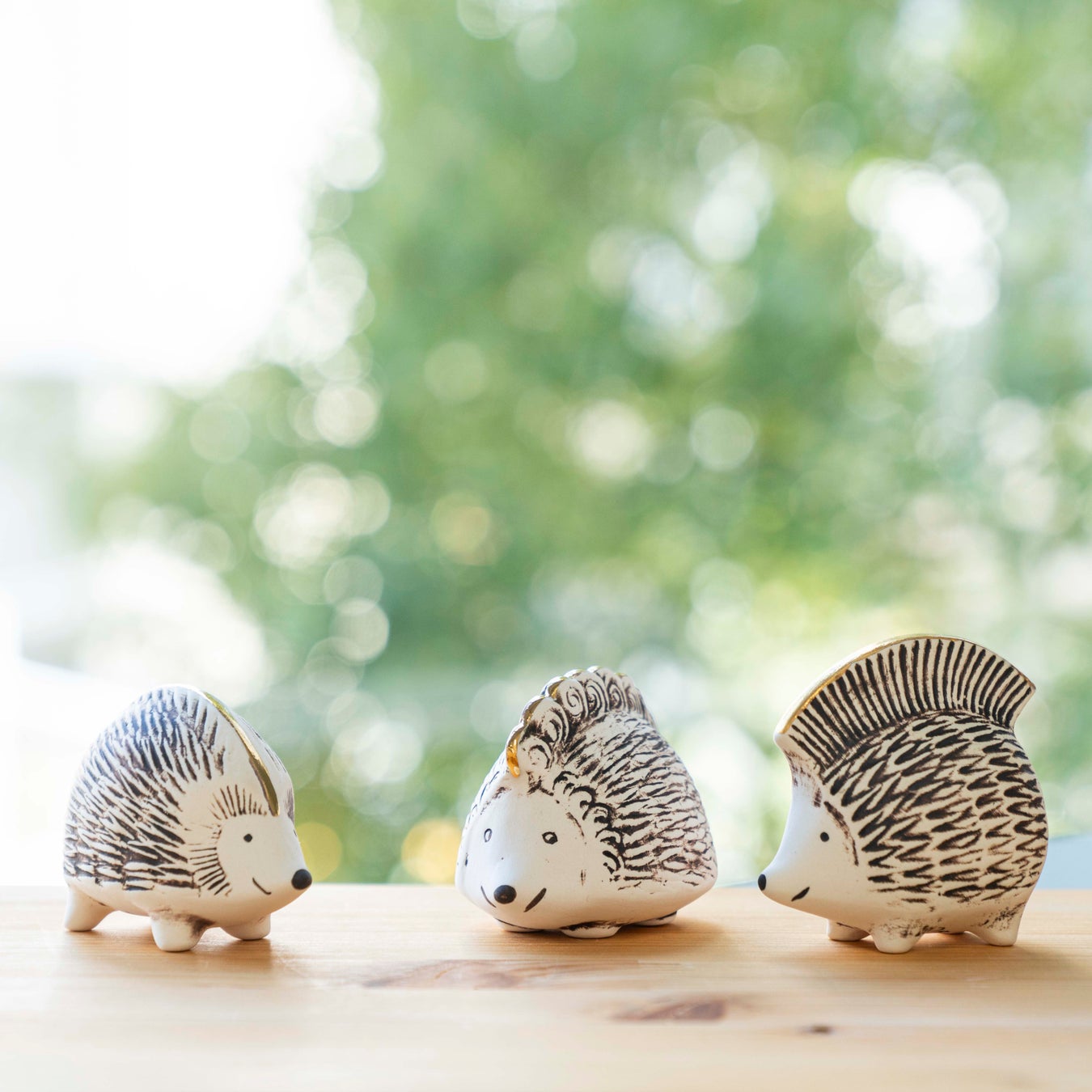 2019年頃、リサの福袋を作ることになり、そこでなにかとっても嬉しい大当たりを入れたいということで、金のはりねずみを作りました。これはサンプルを含めても数個ずつしか作っておらず、トンカチの社内にも1セットしか現存しないくらい、正真正銘のレア中のレアなアイテムです。大当たりとしてごく少数のみ世に出ただけの、幻のはりねずみですが、リサの追悼展(2024年4月にギャラリー「のこぎり」にて開催)にて久々に公開してみたところ、あまりに反響が大きく、また私たちにとっても、リサの天才を目の当たりにした思い出の作品でもあることから、もういちど、そして今度はもう少し多くの人に届けたく、当時を知るスウェーデンの工房の協力を得て、限定的に復刻することとなりました。