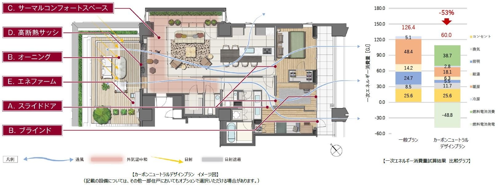 (1)カーボンニュートラルデザインプラン※3 ~一次エネルギー消費量削減率約▲53%を達成~
