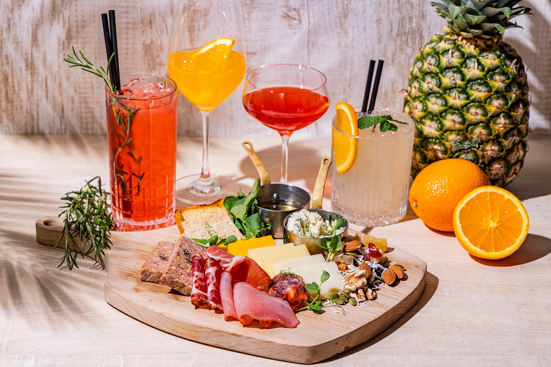夜のJUNCTIONには、カクテルグラスの中に“夏”を閉じ込めたような、トロピカルカクテル9種のフリーフローが登場します。 パイナップルやパッションフルーツ、オレンジなど、陽射しを浴びた果実が香り立つ華やかなラインナップは、まるでリゾートのサンセットタイム。さらに、おつまみプレート付きのアップグレードプランもご用意。人々が行き交う賑やかな空間で、気の置けない友人と囲むトロピカルなひとときを、心ゆくまでお過ごしください。