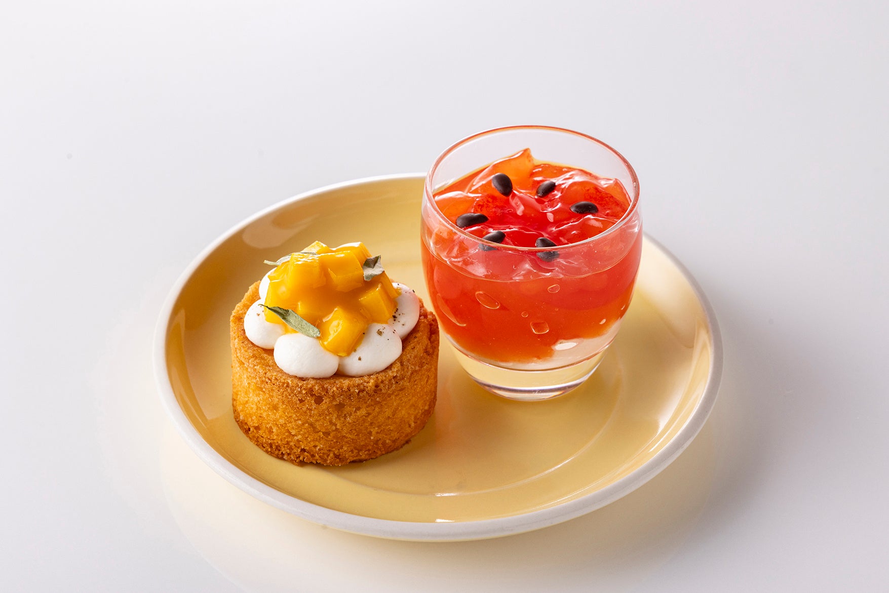 夏のフルーツのみずみずしい食感、酸味と甘みのコントラスト、重なり合う美しい層—まるで南国の風を閉じ込めたかのようなスイーツが、真夏の午後を彩ります。日常からふっと離れ、ひとときの南国リトリートへと誘う、リュクスな時間をお楽しみください。
