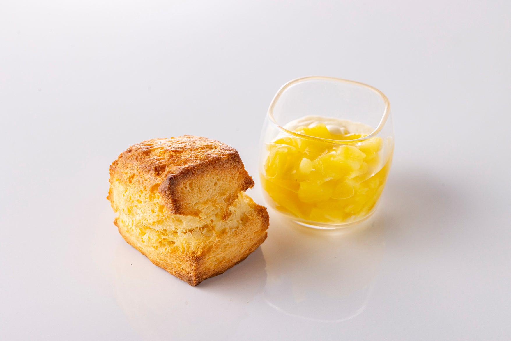 スコーン:焼き立てのスコーン、日替わりフルーツのジャム、クロテッドクリーム