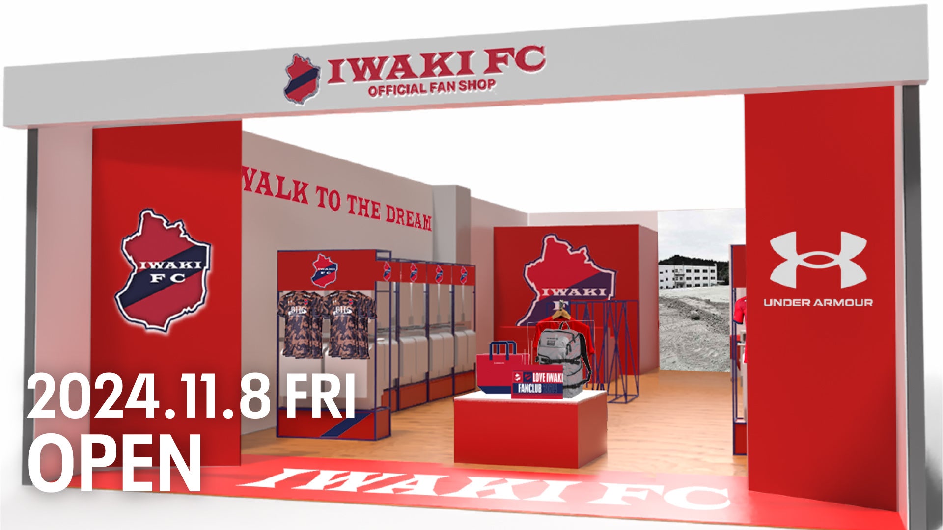 いわきFCパークに続く、いわきFCブランドを発信する第2の拠点として「ファンが集い、非日常のワクワクを感じられる場所」をコンセプトに、クラブオフィシャルグッズの販売やホームゲームの観戦チケット販売はもちろん、ここでしか買えない限定アイテムやアンダーアーマーライセンスグッズの販売、ユニフォームへのマーキング加工なども提供してまいります。