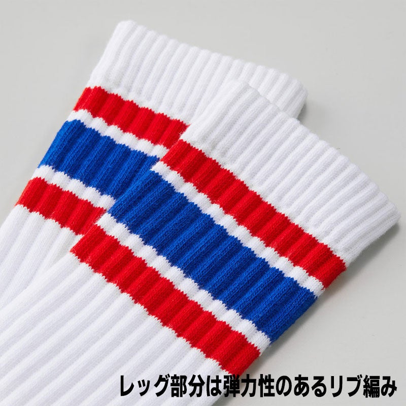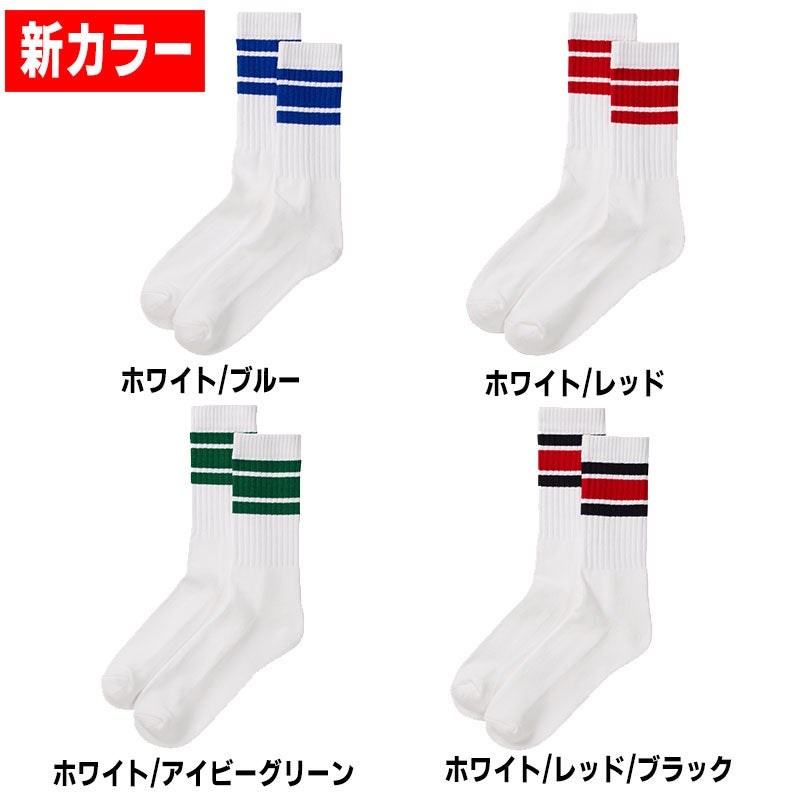 ソリッドカラーだけでなくラインソックスの展開もあり、ハイカットのスニーカーなどからチラ見えするラインがコーデのアクセントに。