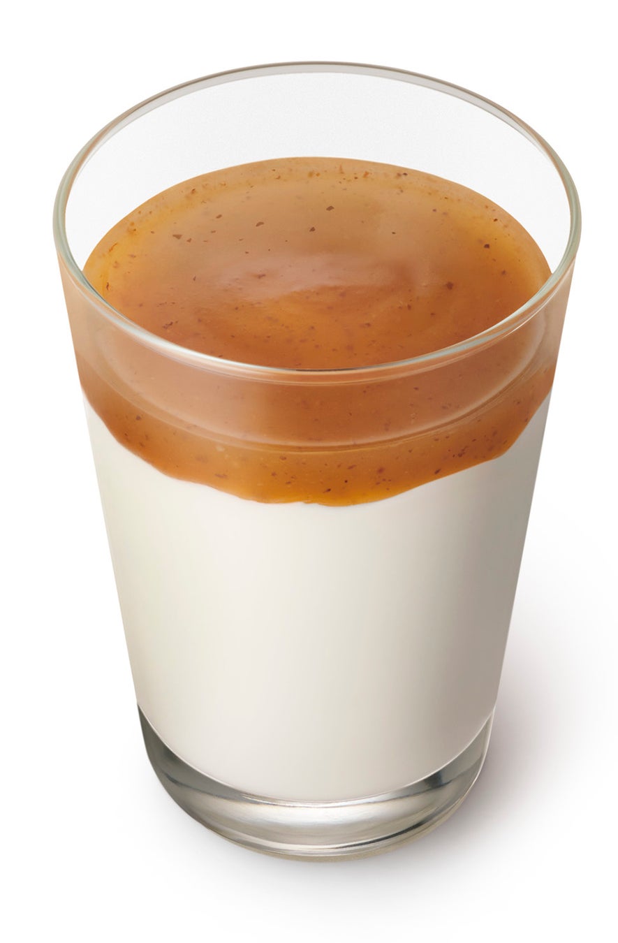 国産の栗を使用したソースと「モスシェイク バニラ」を合わせた、風味豊かな商品です。ソースには風味が豊かな熊本県産の栗と、上品な甘さが特長の茨城県笠間市産の栗をブレンドして使用しています。栗ソースは一部に渋皮栗のペーストを使用することで、風味をさらに引き立て、豊潤な味わいに仕上げました。栗ソースとバニラシェイクを混ぜ合わせながらお楽しみください。Mサイズは、セット価格に140円追加していただくとセットドリンクとしてもお選びいただけます。