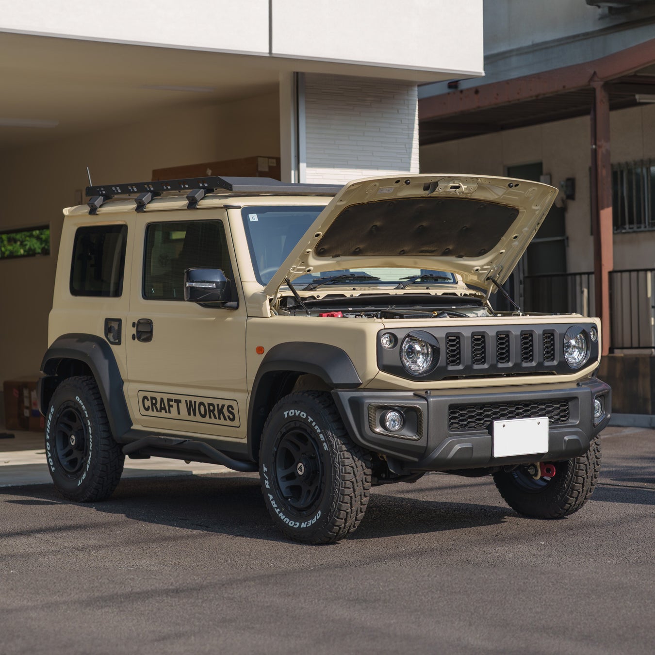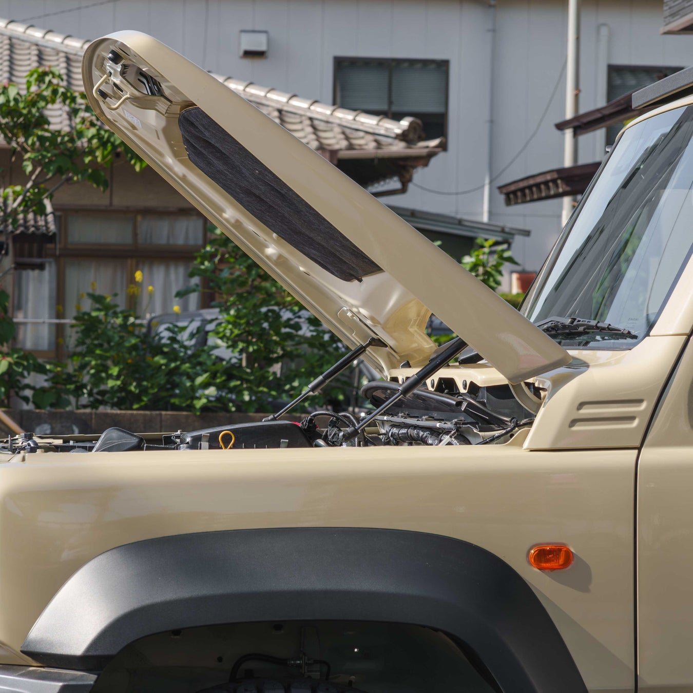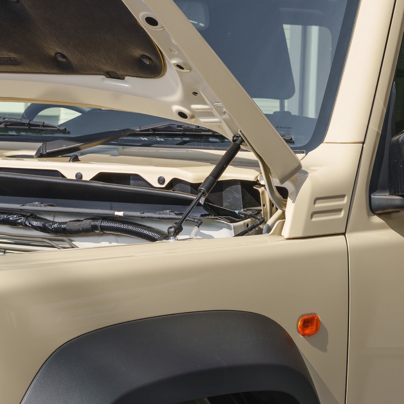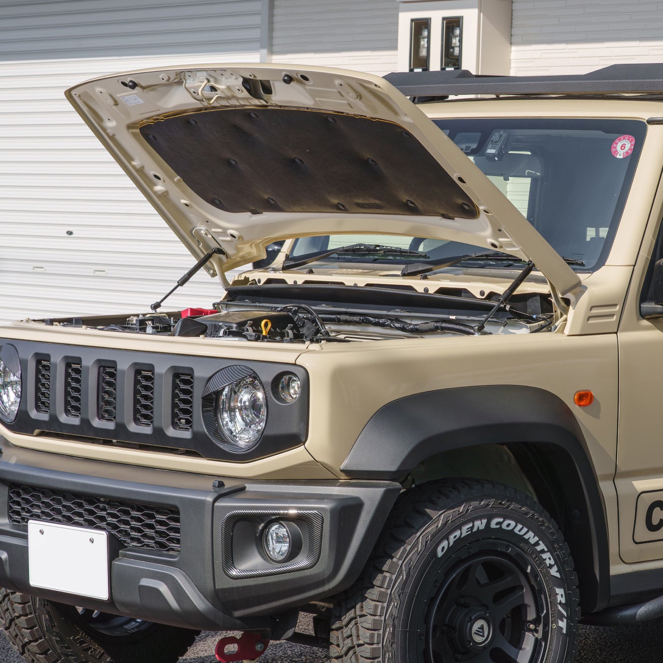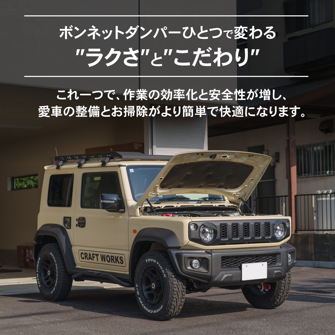 しっかりと支える機能性を持ちながら、デザインにもこだわり、ジムニーのエンジンルームに美しく調和します。