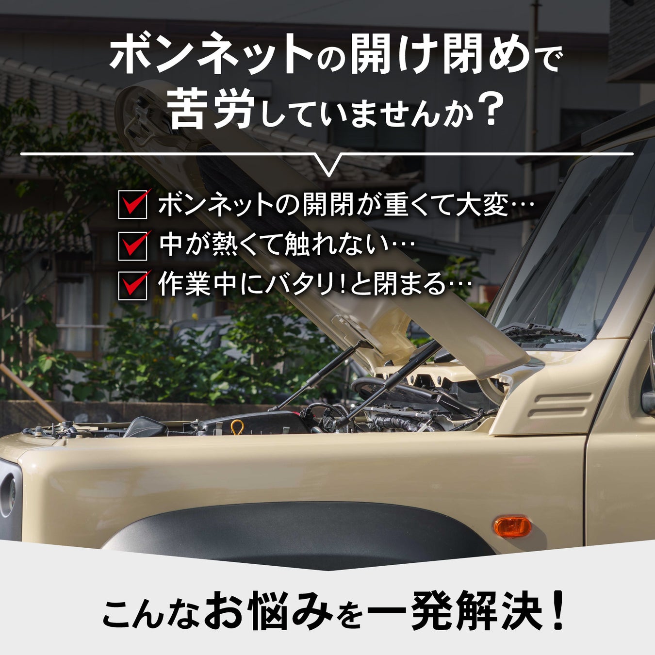 ボンネットがバタン!と落ちてくるのを防ぎます。