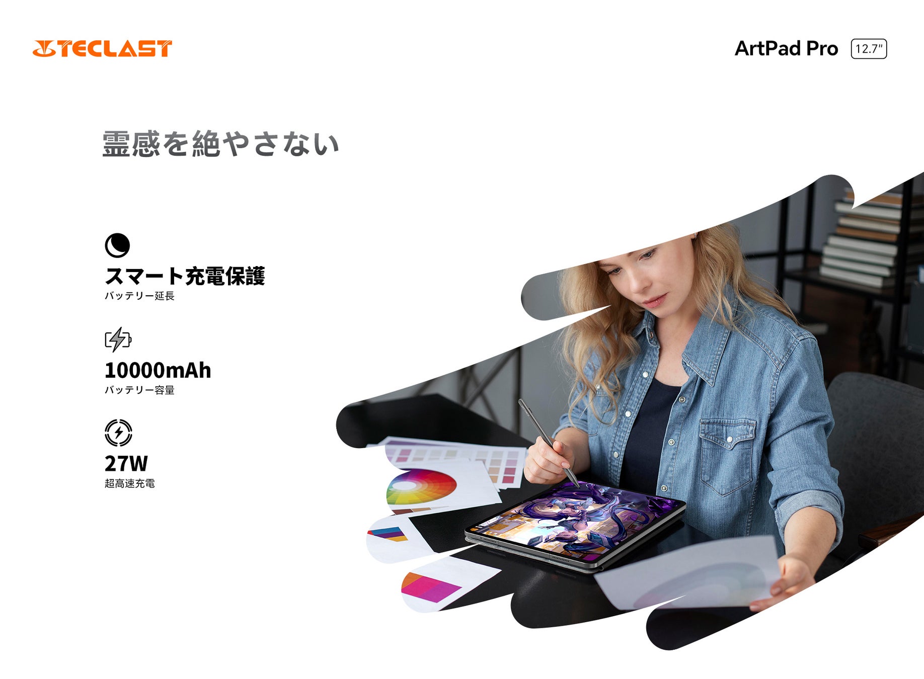 ArtPad Proは、30W超高速充電を備えた10000mAh のバッテリーを搭載しており、より長い稼働時間と素早い充電を実現します。スマート充電システムが電力の流れを調整し、バッテリーを保護して寿命を延ばします。