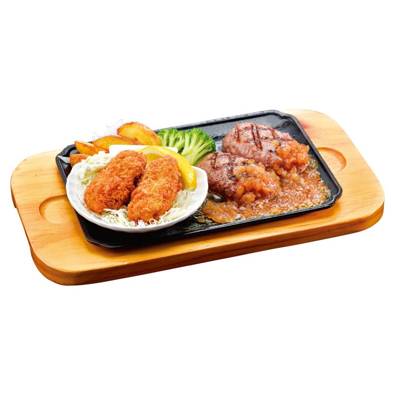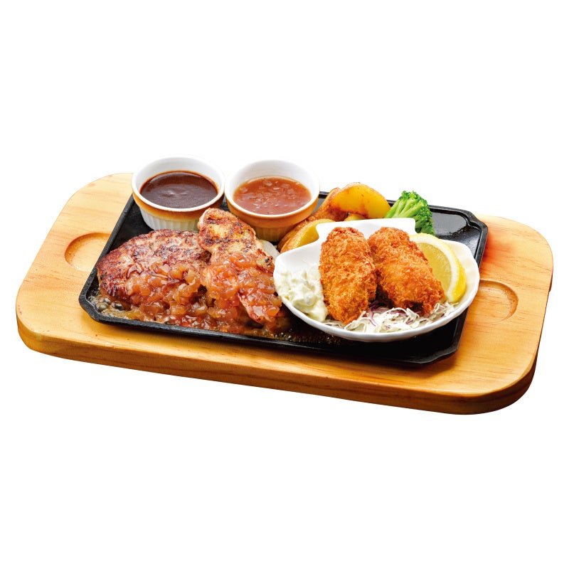 手ごねハンバーグ&グリルチキンと牡蠣フライ