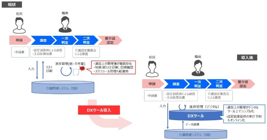 この度、本取り組みの一環として、市民サービスの質向上を目的として介護認定業務における自治体職員の業務効率化に向けた取り組みを行います。