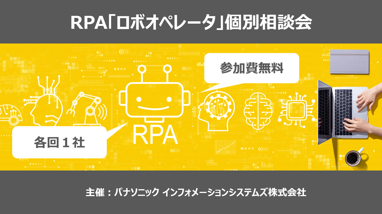 パナソニック インフォメーションシステムズ株式会社は、 2023年1月19日(木)から3月23日(木)にかけて各回1社限定の、RPA「ロボオペレータ」個別相談会を実施します。
