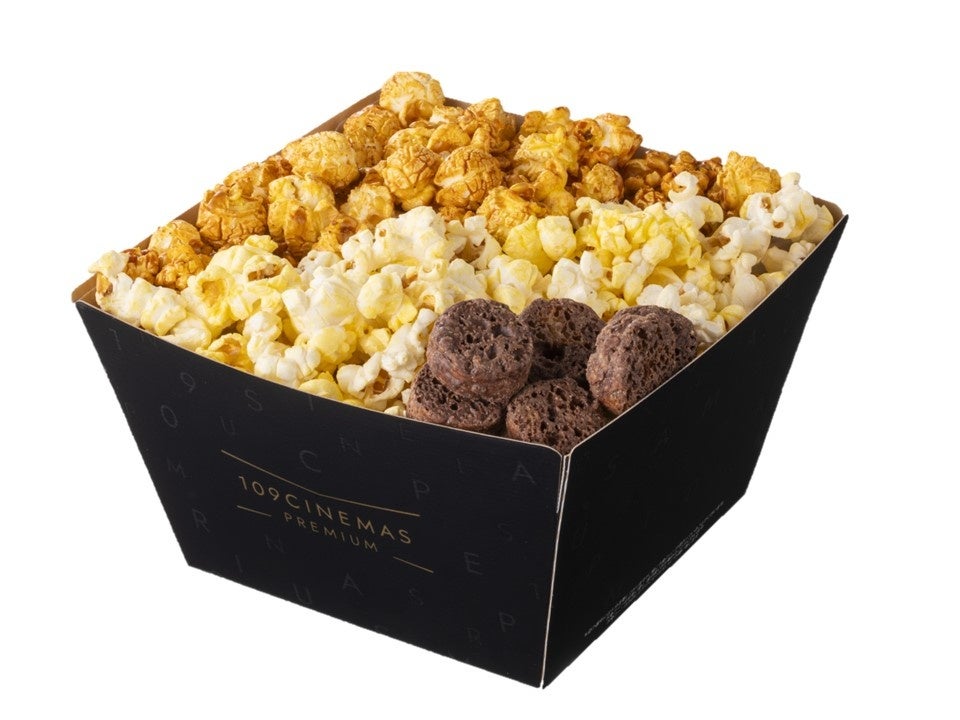 上映開始1時間前から本編開始までお好きなだけご利用可能なWELCOME CONCESSION(ウェルカムコンセッション)で、チョコレートをトッピングしたポップコーンを期間限定でご提供いたします。さらにチョコレートトッピングをご注文いただいた方に先着で、映画『ウォンカとチョコレート工場のはじまり』のオリジナルポストカー