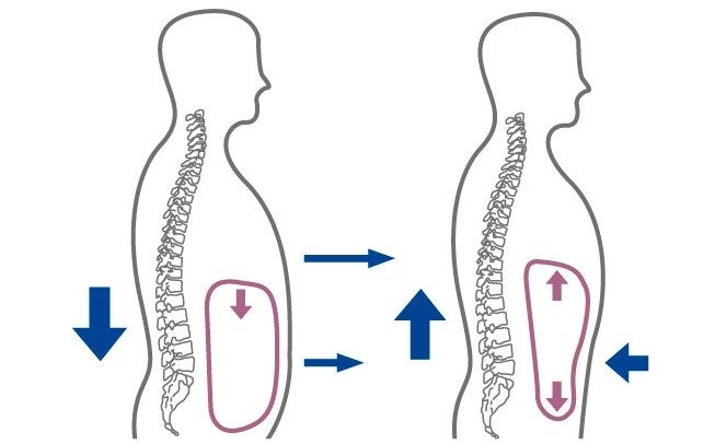 腹部を適度に圧迫することで腹腔の圧力を高め、腰椎への負担を軽減。