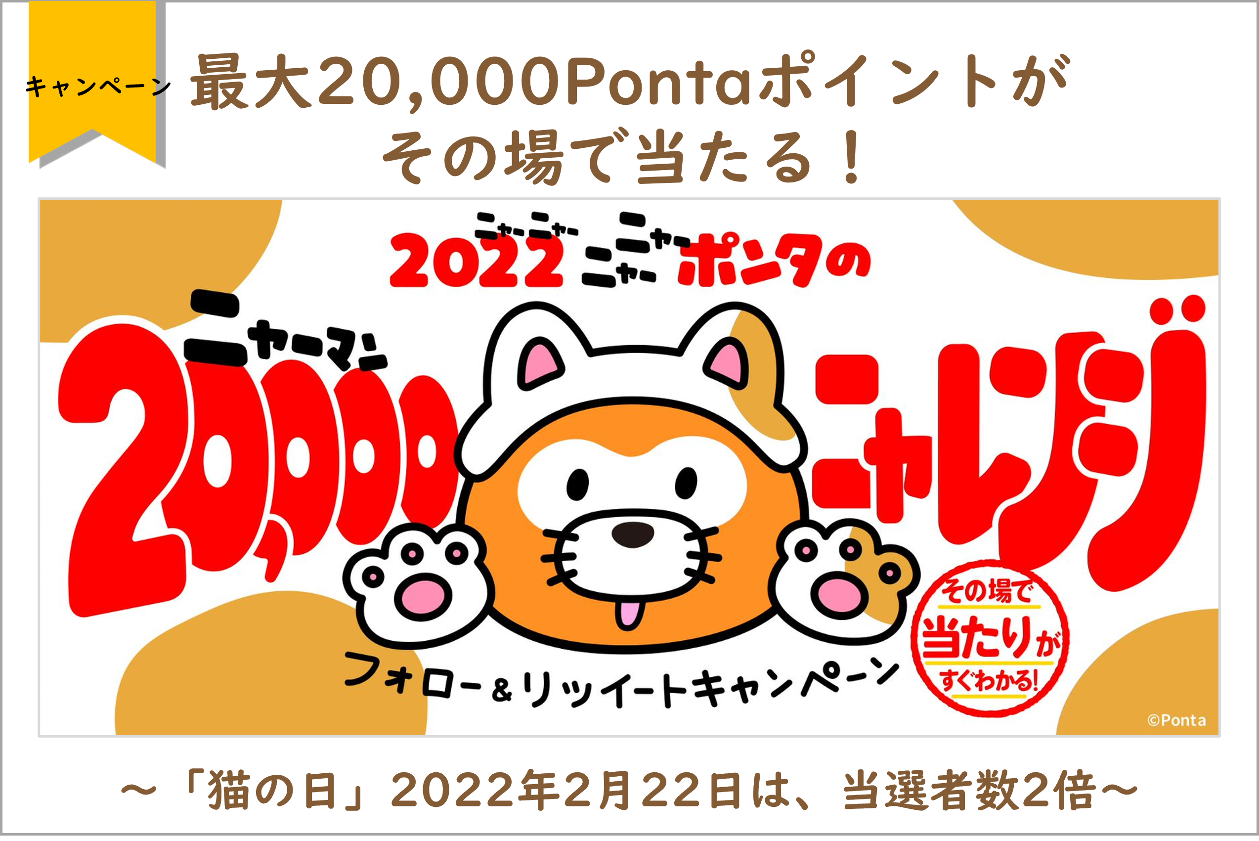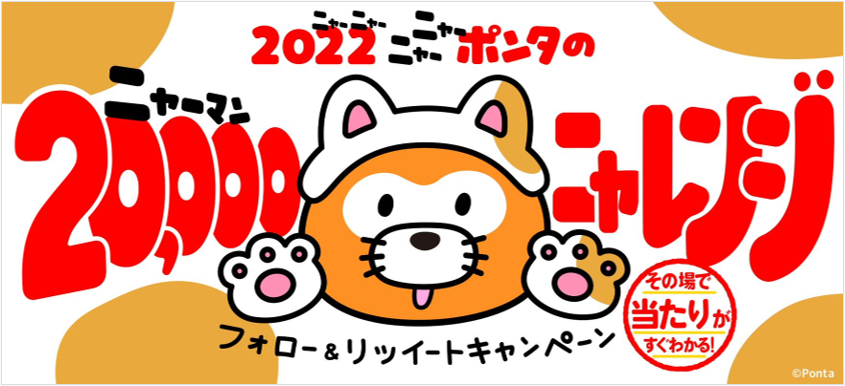 最大20,000Pontaポイントがその場で当たる!「2022ニャーポンタの20,000ニャレンジ フォロー&リツイートキャンペーン!」開催