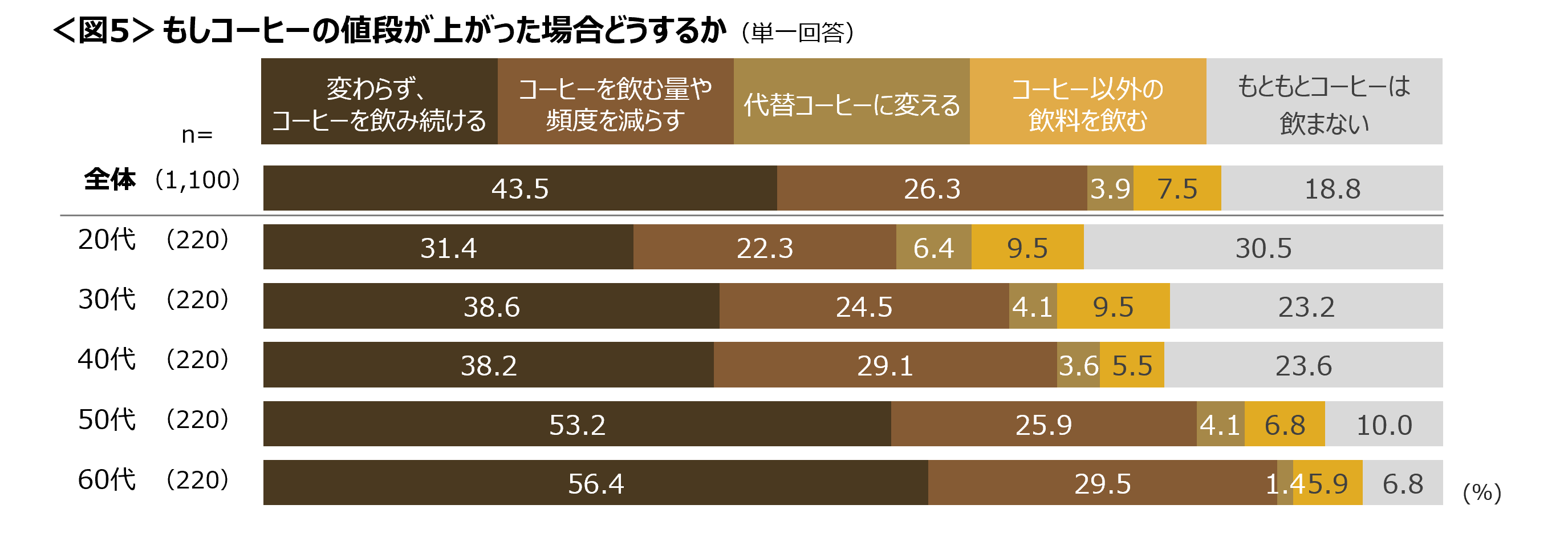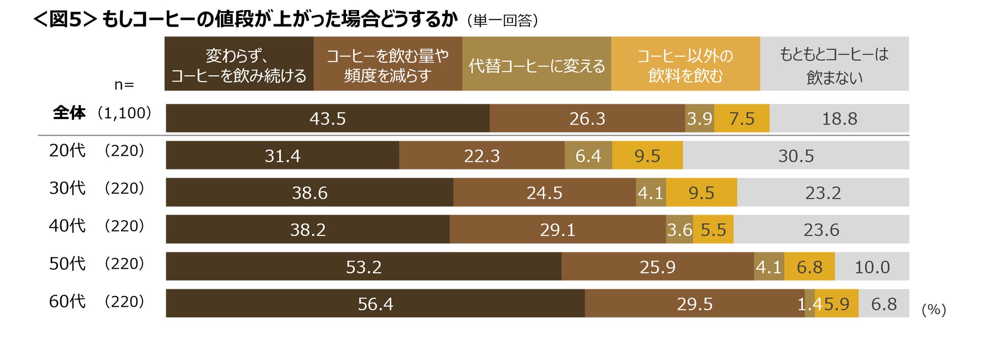 50~60代は半数以上が「変わらず、コーヒーを飲み続ける」と答えている。 <図5>