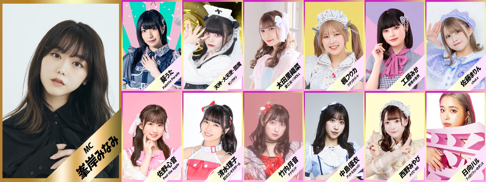 葵うた(Palette Parade)、天神・大天使・閻魔(キングサリ)、太田里織菜(愛乙女☆DOLL)、楓フウカ(クマリデパート)、工藤みか(群青の世界)、佐藤まりん(chuLa)、佐野心音(Peel the Apple)、清水理子(虹のコンキスタドール)、竹内月音(ナナランド)、中島優衣(アイドルカレッジ)、西野みやび(メイビーME)、日向ハル(フィロソフィーのダンス)※五十音順