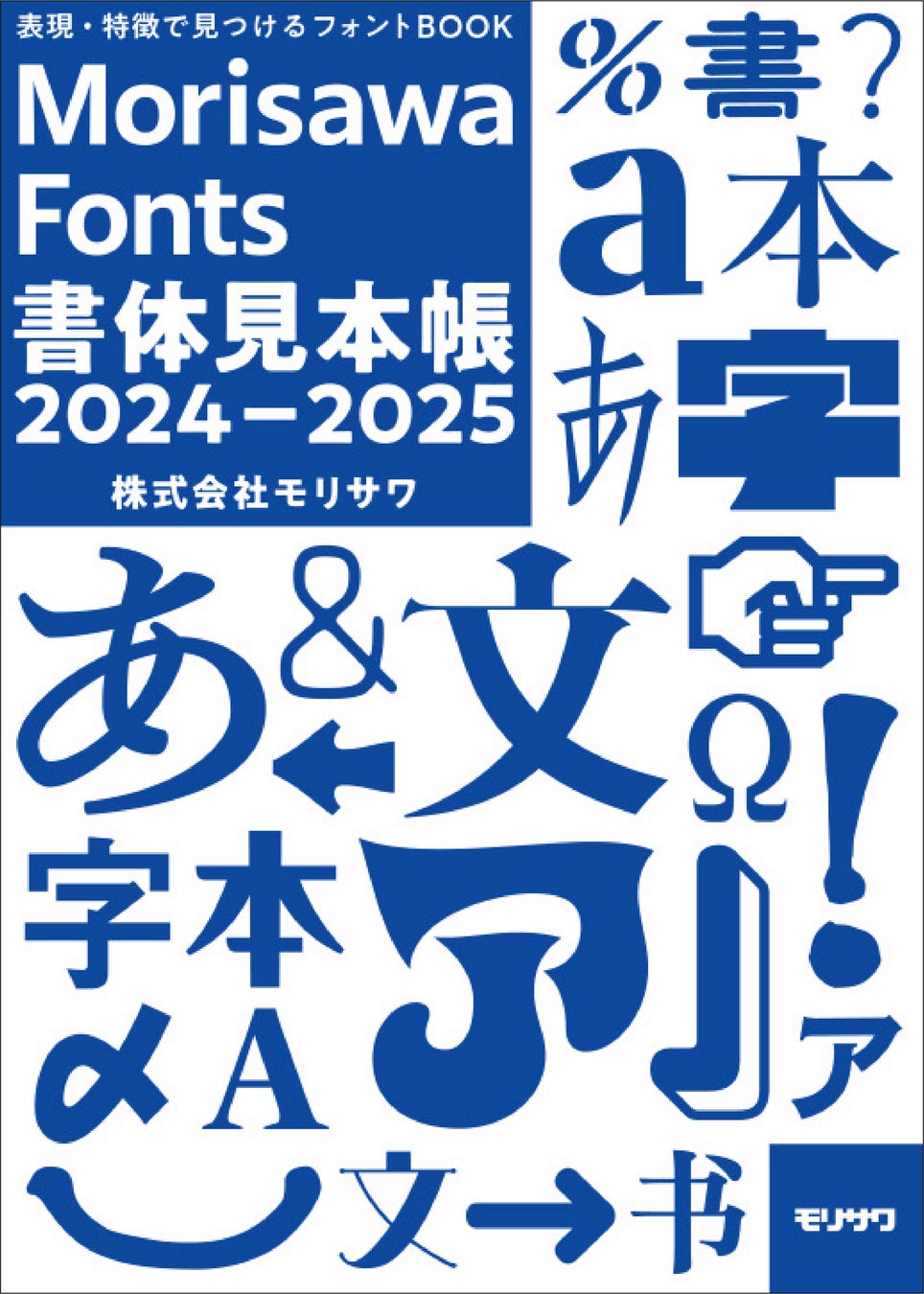株式会社モリサワ(代表取締役社長:森澤彰彦 本社:大阪市浪速区敷津東2-6-25 Tel:06-6649-2151 代表、以下モリサワ)は、2024年度新書体を含むMorisawa Fonts搭載書体を網羅した「表現・特徴で見つけるフォントBOOK Morisawa Fonts書体見本帳2024–2025」を制作・刊行しました。シリーズ既刊「モリサワ総合書体見本帳」と同様に、「つくりたい表現」や「特徴」といった親しみやすい独自のカテゴリで書体が見つかる、使い手目線にこだわった見本帳です。