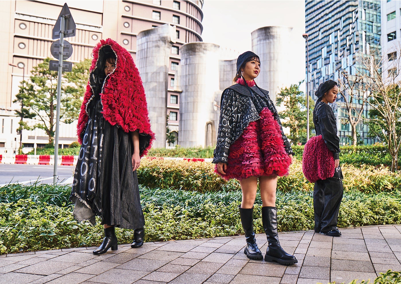 今回コラボレーションしたファッションデザインも、このコンセプトから生まれた作品たちであり、それは、新たに活動を始めた一般社団法人梅田1丁目エリアマネジメントが、これからのまちづくりを創造しようとする未来への想いを「NEWS」として発信できる企画として取り組むに至っています。