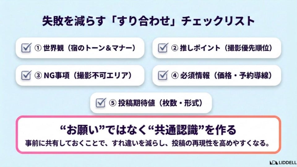 「撮れる環境」と「気持ちよく過ごせる体験設計」が受け入れの鍵です。