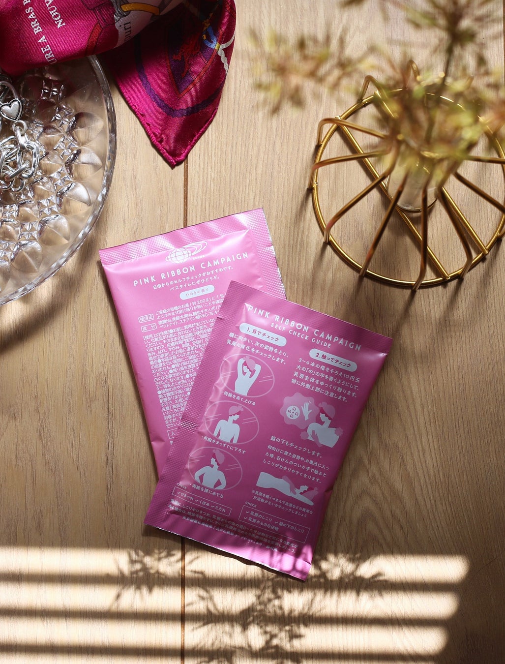 2017年から毎年10月に実施しているピンクリボンキャンペーンは、女性用試着室の鏡にセルフチェックガイドを掲出し、着替えるついでに簡単なセルフチェックを促す活動を中心に継続しています。昨年に続き今回も、セルフチェックガイドを掲載した入浴剤をご来店のお客様に配布し※、日々のバスタイムに胸の状態を確認する習慣をご提案します。ブレスト・アウェアネスを身につけることで小さな変化に気付けるようになると同時に、乳がん検診を受けることや、医療機関に相談することに対するためらいが軽減されることを期待します。(※入浴剤は数量限定で、なくなり次第配布を終了します。)