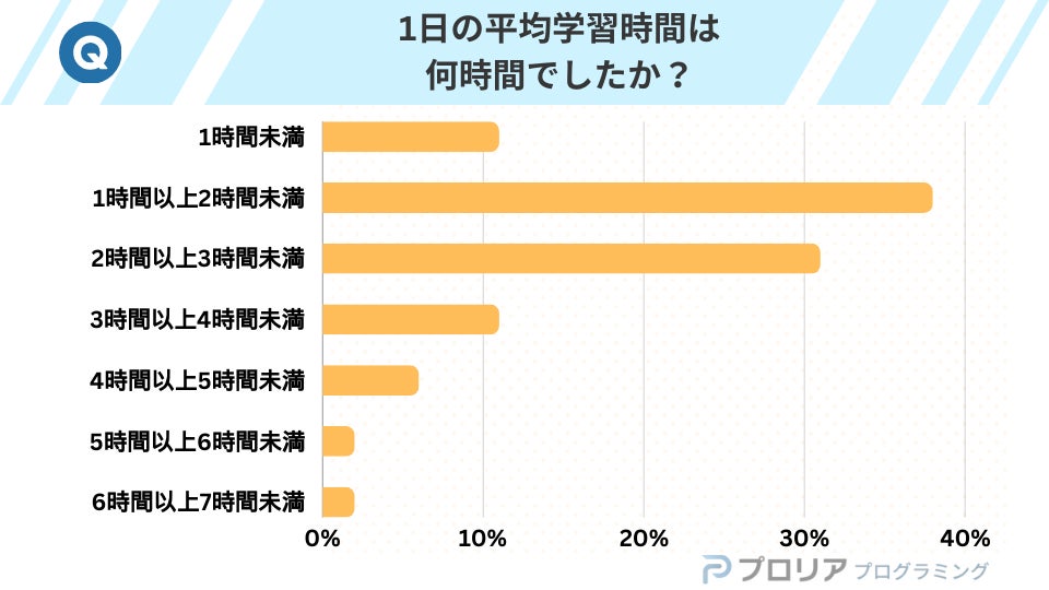 学習時間: 1〜2時間が最多(38%)、2〜3時間も(31%)と、日々の積み重ねが成功の鍵