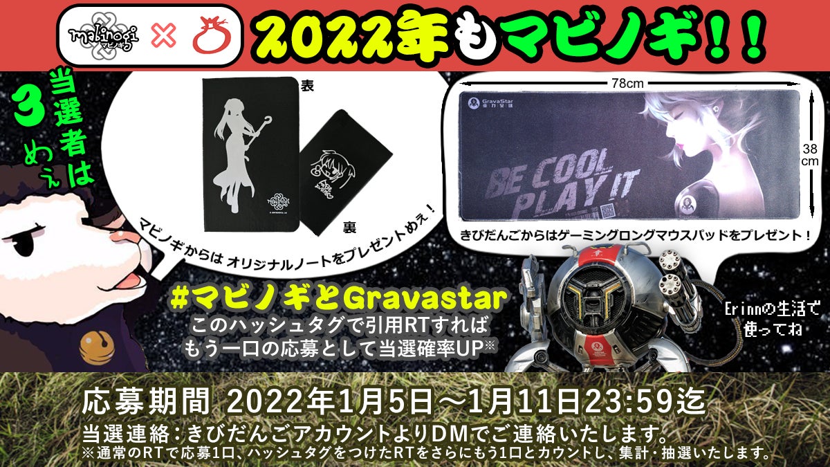 2022年1月11日(火)までの期間中に「きびだんご公式Twitterアカウント(https://twitter.com/KibidangoJp)」または「マビノギ公式Twitterアカウント(https://twitter.com/mabinogi_nexon)」をフォロー&キャンペーン投稿をリツイートしていただいた方の中から、抽選で3名様に『ゲーミングロングマウスパッド』&『マビノギオリジナルノート』をプレゼントいたします。