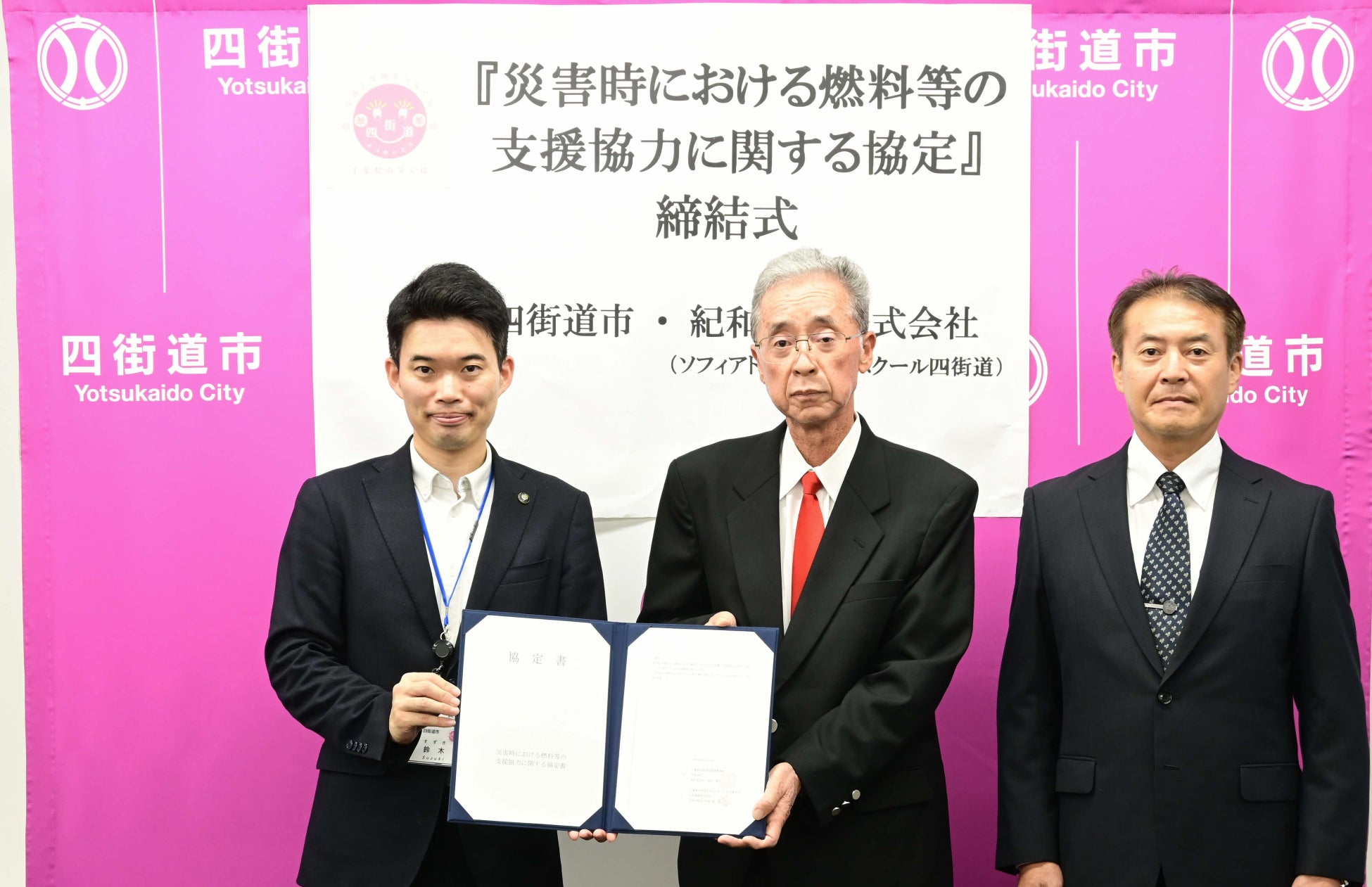 四街道市と紀和興業株式会社は、令和6年10月24日(木)に「災害時における燃料等の支援協力に関する協定」を締結しました。