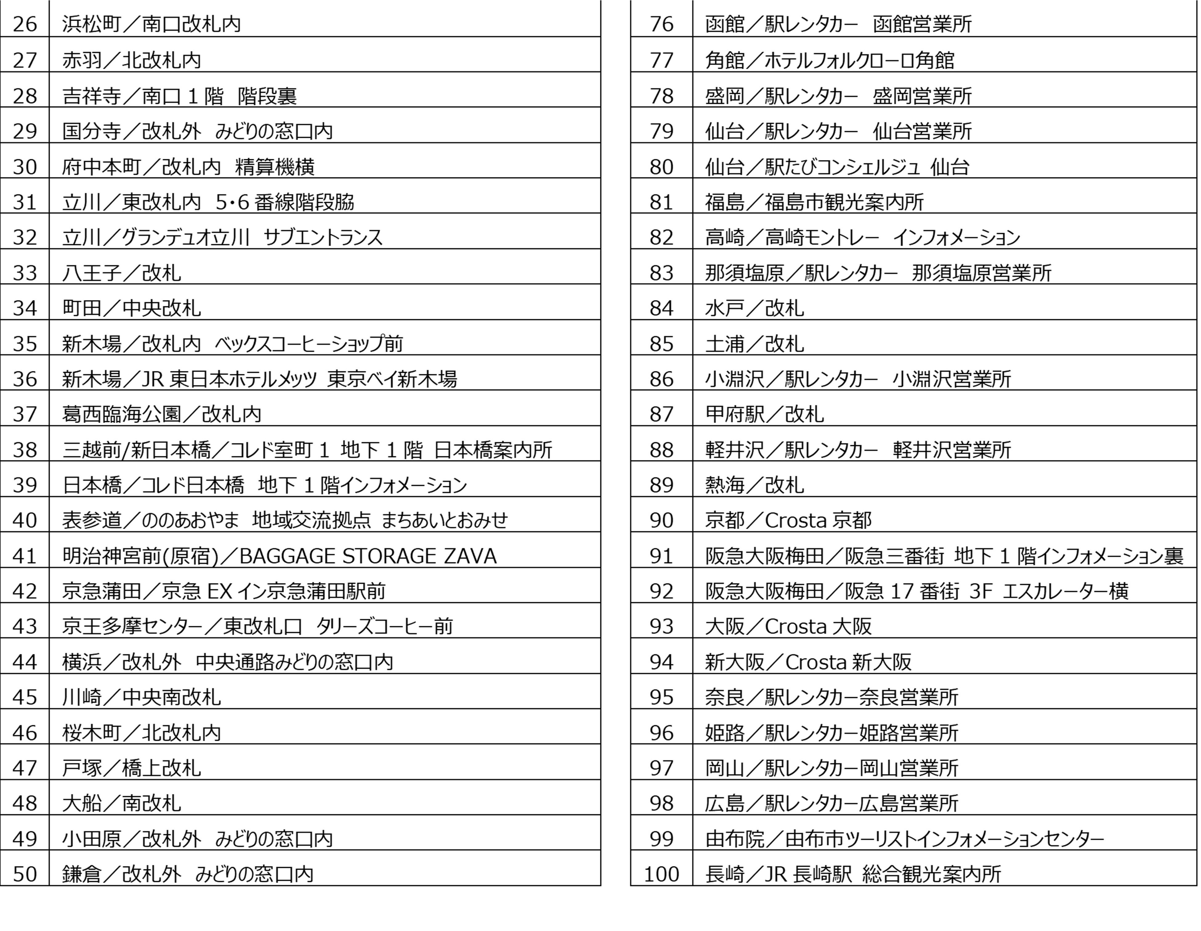 ① 引き続き利便性の高いターミナル駅やJR東日本グループ以外の施設を含む観光・イベント需要が高い場所等を中心にサービス展開箇所の拡大を進めます。