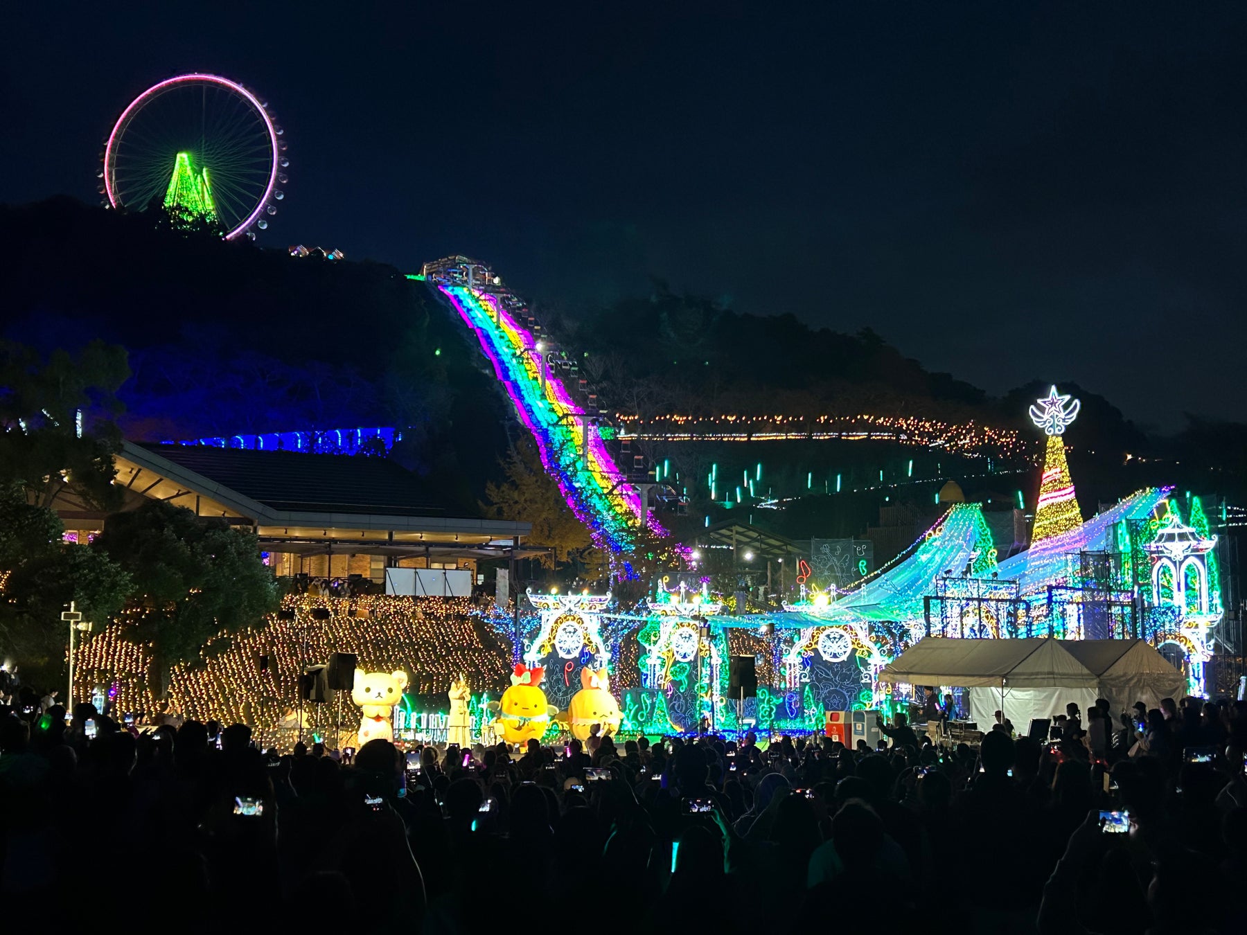 「さがみ湖イルミリオン」は、都心から約50分、広大な土地と高低差を生かした光の絶景を満喫できるイルミネーションイベントで、本年は「リラックマ」や「すみっコぐらし」などのサンエックスの人気キャラクターが集結する「サンエックスキャラクターズイルミネーション」エリアが登場しました。「リラックマ」「すみっコぐらし」「たれぱんだ」「アフロ犬」「こげぱん」「にゃんにゃんにゃんこ」「センチメンタルサーカス」の7キャラクターと一緒に写真を撮れるイルミネーションスポットが多数設置されるほか、さがみ湖イルミリオンオリジナル【ぶらさげぬいぐるみ】などのコラボグッズやノベルティ付きコラボフードも楽しめます。
