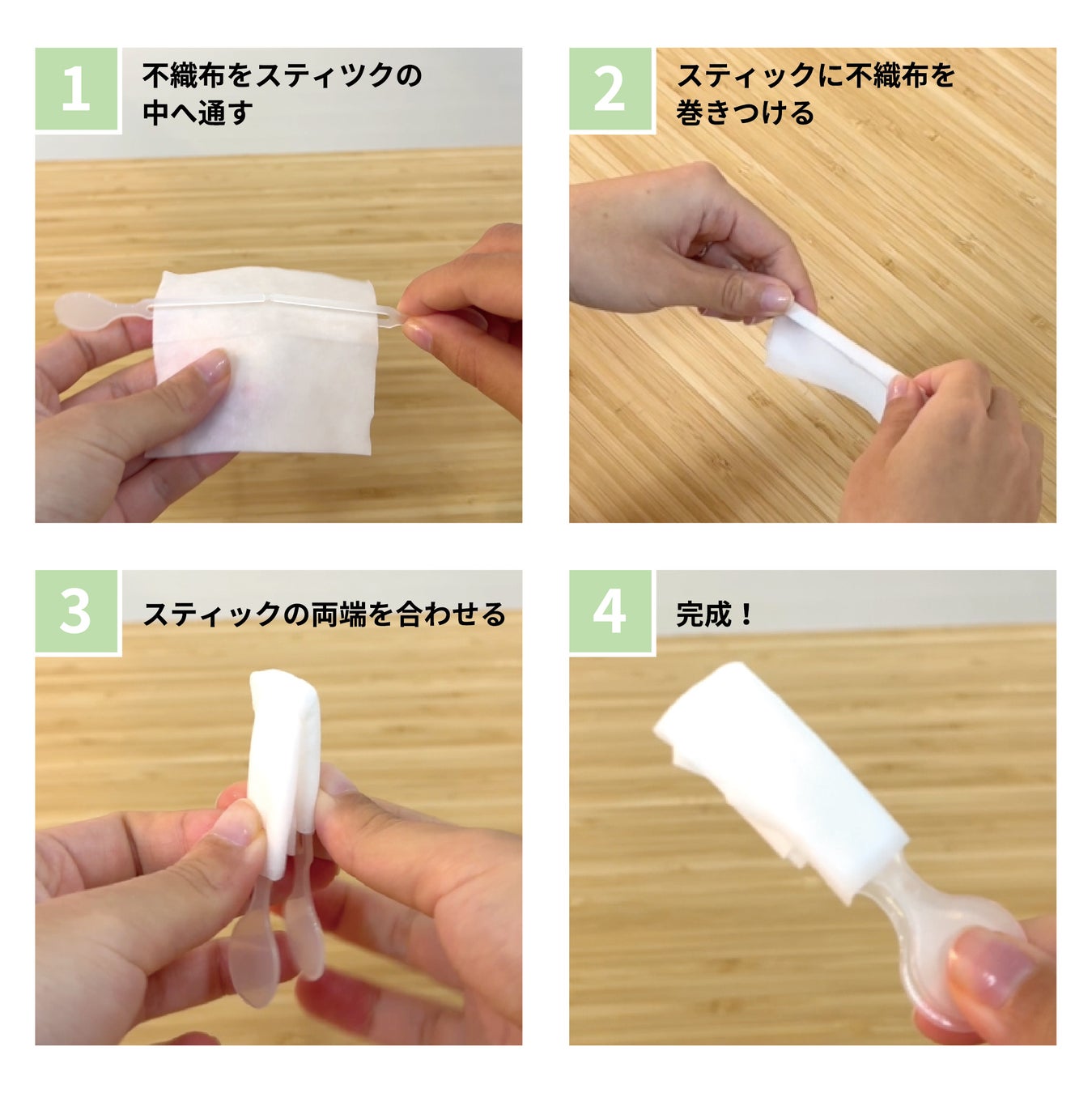 清潔で便利な「衛生スティック」が付いているので、口の中に直接手を入れずに磨けます。
