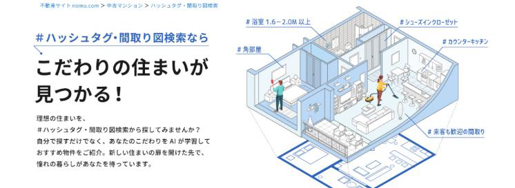 不動産情報サイト「ノムコム」にAIを活用した「ハッシュタグ・間取り図検索」機能を導入