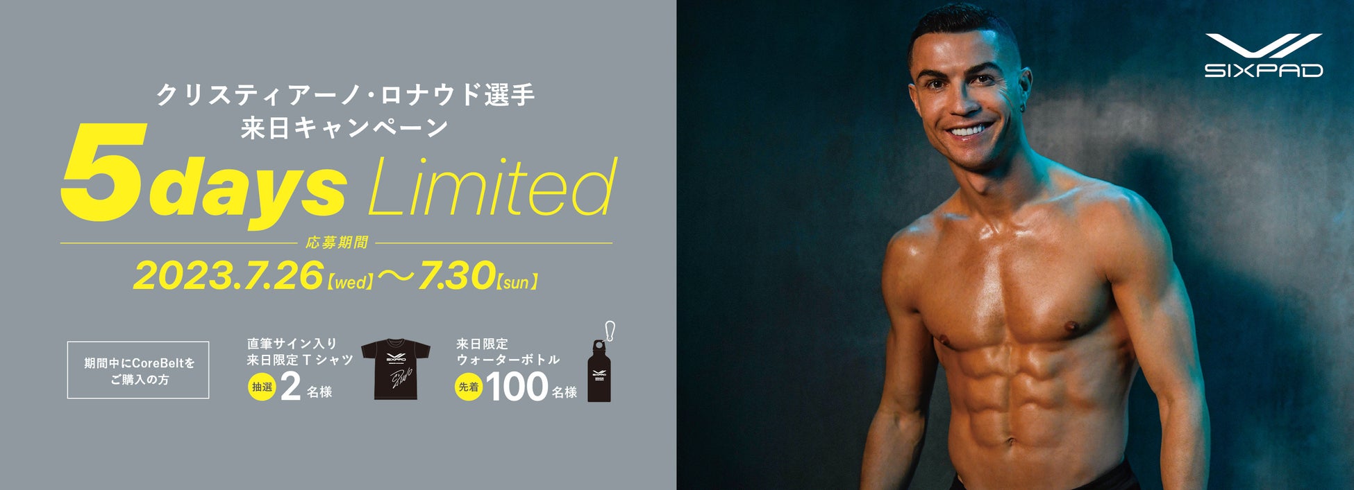 クリスティアーノ・ロナウド選手の来日を記念し、ロナウド選手の直筆サイン入りグッズが2名様に当たる、または先着100名様に来日限定グッズがもらえるキャンペーンを7月26日(水)から5日間限定で実施します。