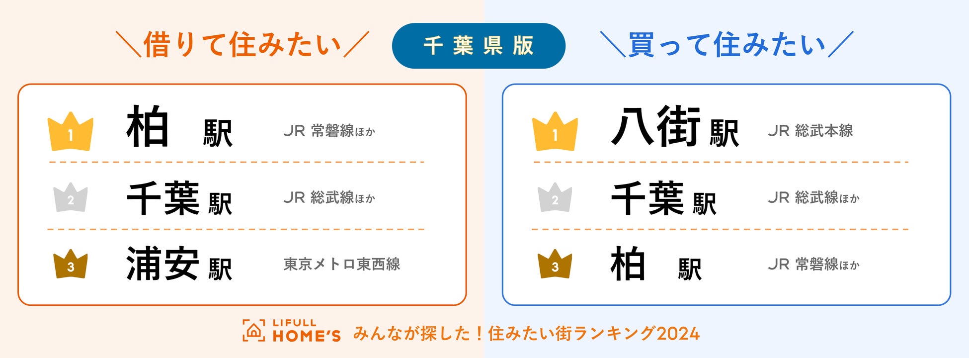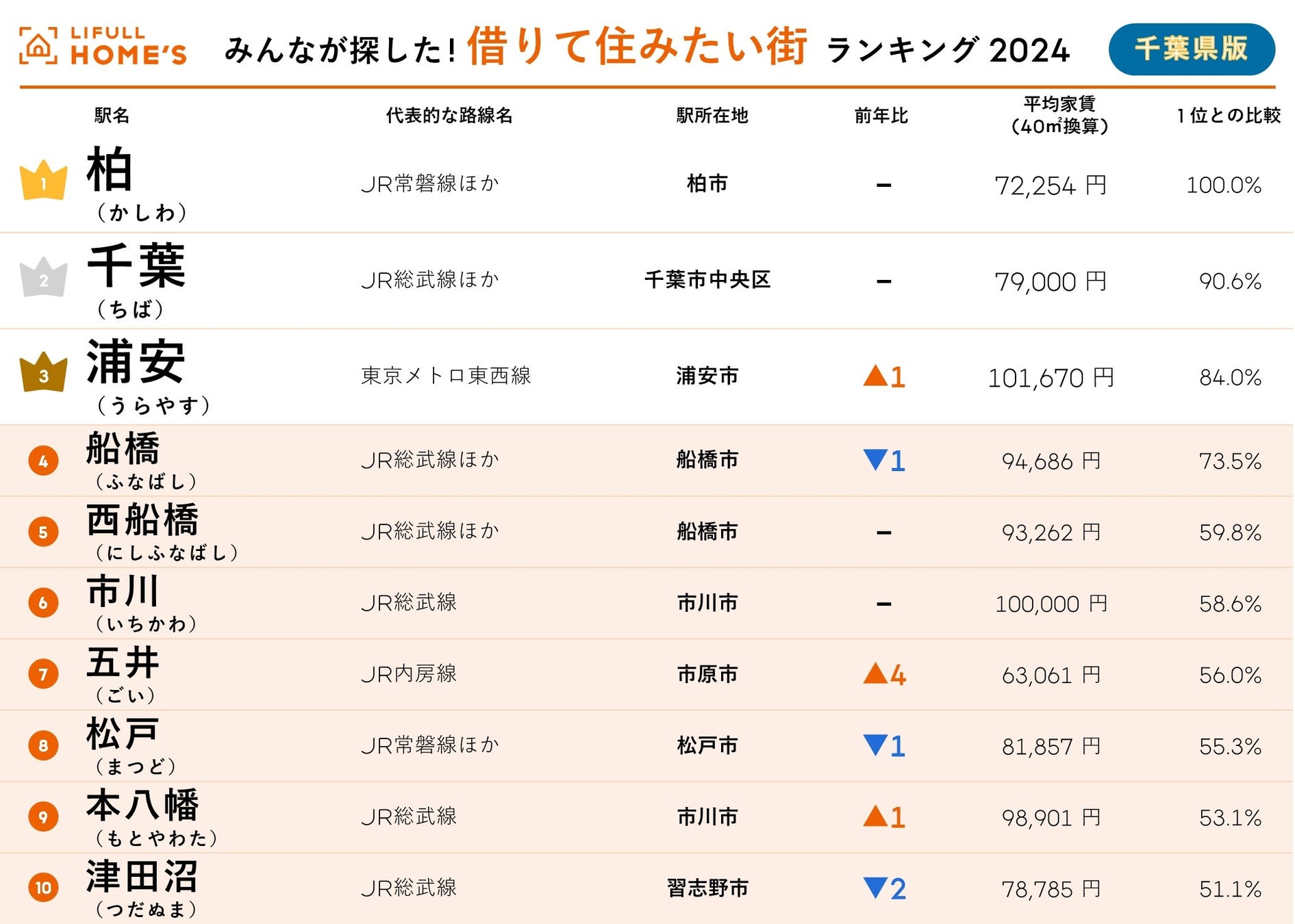 千葉県版「2024年 LIFULL HOME'S みんなが探した!借りて住みたい街ランキング」