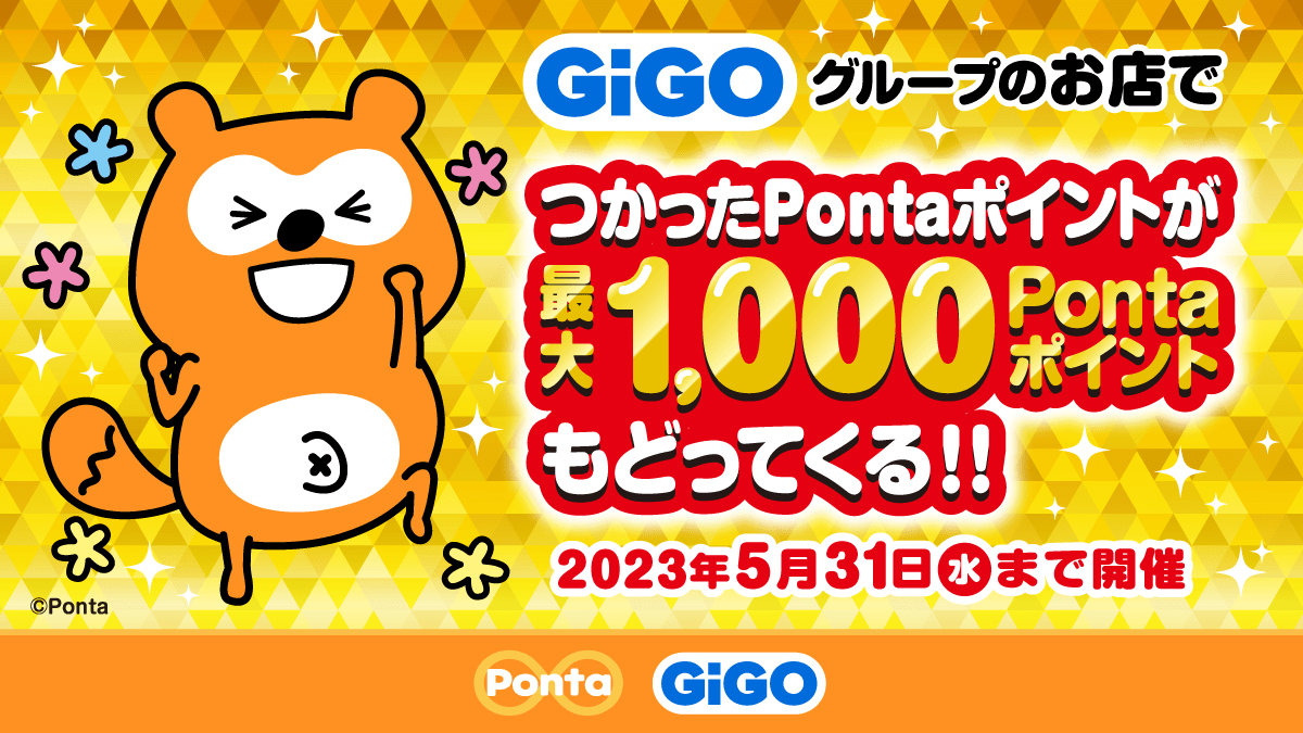 GiGOグループのお店で最高1,000Pontaポイントもどってくる!『Pontaゴールデン還元祭』