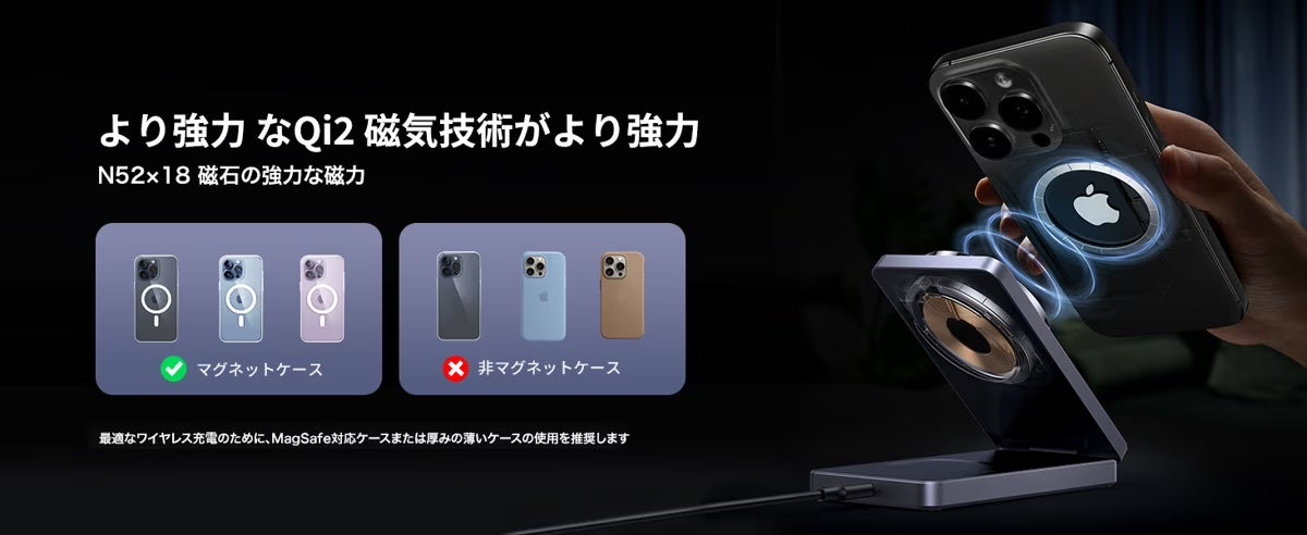 フォーカルポイント株式会社(本社:横浜市、代表取締役 恩田英樹 以下フォーカルポイント)は、UGREENの国内販売代理店として、2025年3月25日より、UGREEN 2-in-1 マグネットワイヤレス充電器の日本国内での販売を開始いたします。