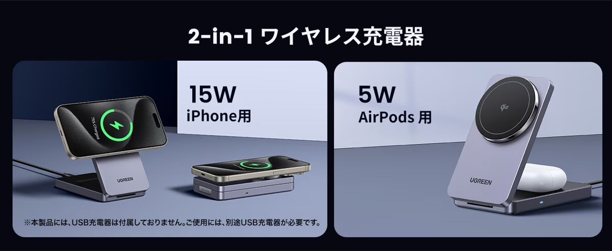 UGREEN 2-in-1 マグネットワイヤレス充電器 45023|折りたたみができる2-in-1のワイヤレス充電器を取扱開始