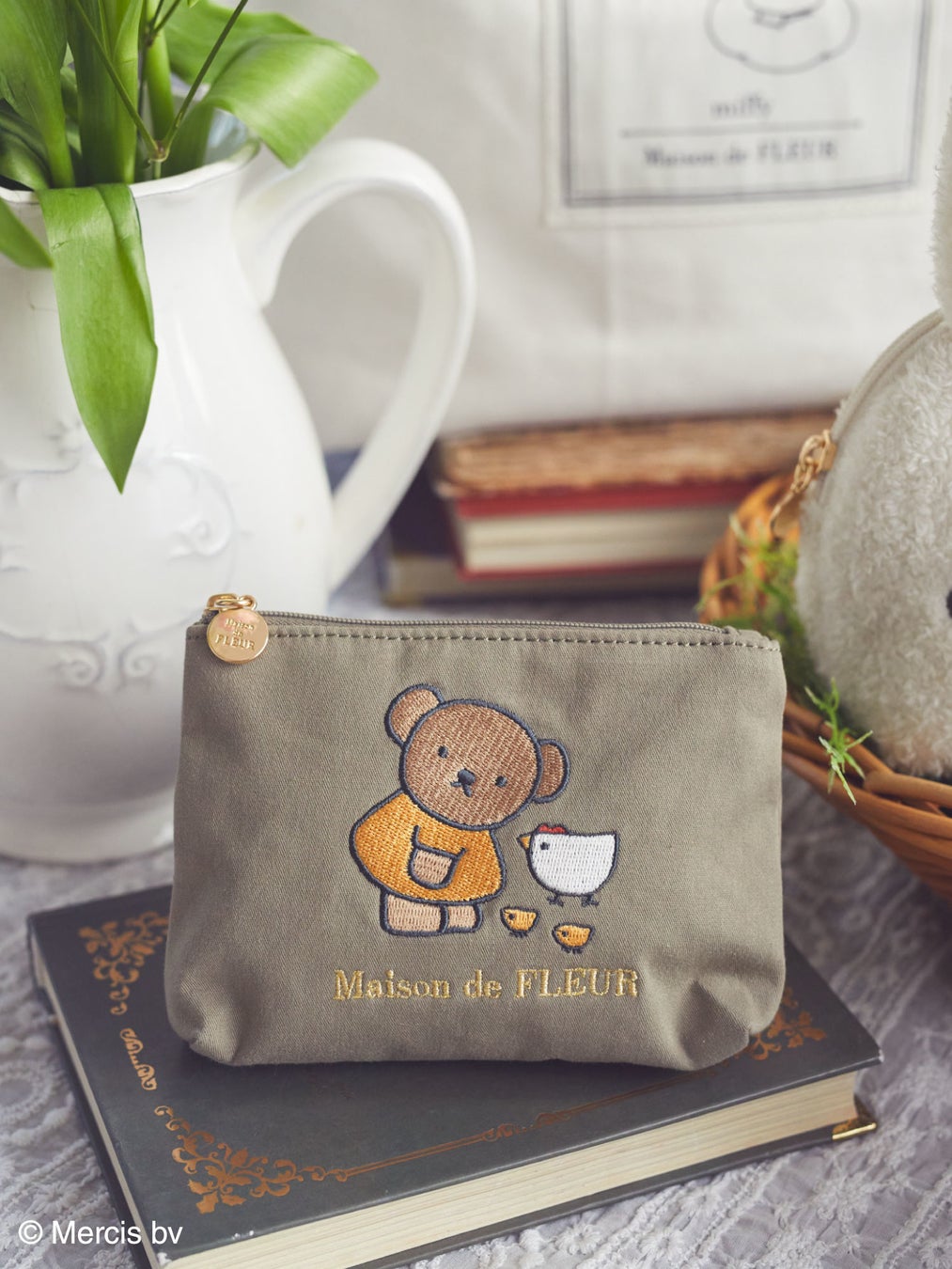 さらに、ミッフィーとにんじん、ボリスとお花の刺繍を施したトートバッグや、刺繍、総柄、フェイス型とバリエーション豊富にポーチもご用意いたしました。