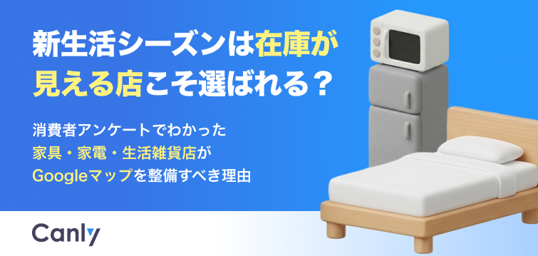 Google ビジネスプロフィール™︎・HP・各SNSの一括管理サービス「カンリー店舗集客」の開発・提供を行う株式会社カンリー(所在地:東京都品川区、代表取締役:辰巳 衛,秋山 祐太朗)は、生活雑貨業界向けに「新生活シーズンは在庫が見える店こそ選ばれる?消費者アンケートでわかった家具・家電・生活雑貨店が Googleマップを整備すべき理由」を無料公開しましたので、ご案内いたします。